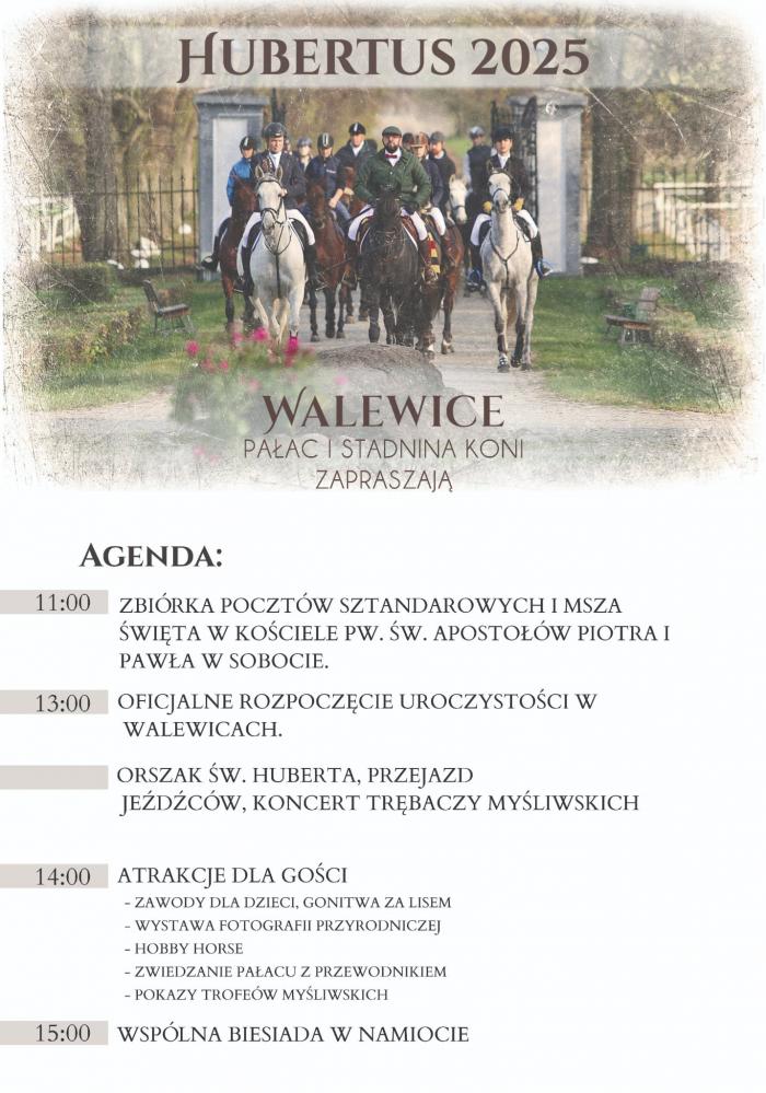 Już w sobotę, 18 października, w Walewicach odbędą się doroczne obchody Hubertusa – święta myśliwych, jeźdźców i leśników, upamiętniającego św. Huberta, patrona ludzi związanych z lasem i naturą. To wyjątkowe wydarzenie od lat przyciąga pasjonatów koni, łowiectwa oraz miłośników regionalnych tradycji.