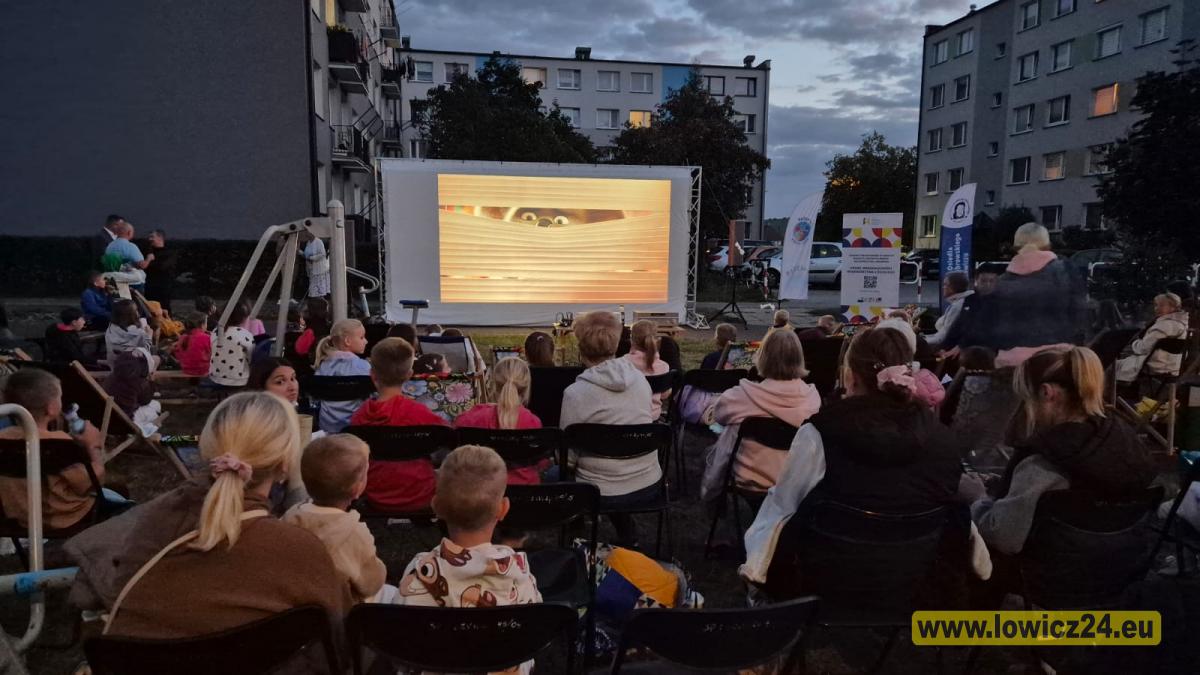 W piątkowy wieczór, 22 sierpnia, osiedle Dąbrowskiego w Łowiczu zamieniło się w prawdziwą salę kinową pod gołym niebem. Mieszkańcy spotkali się, by wspólnie obejrzeć popularny film animowany „Sing”.