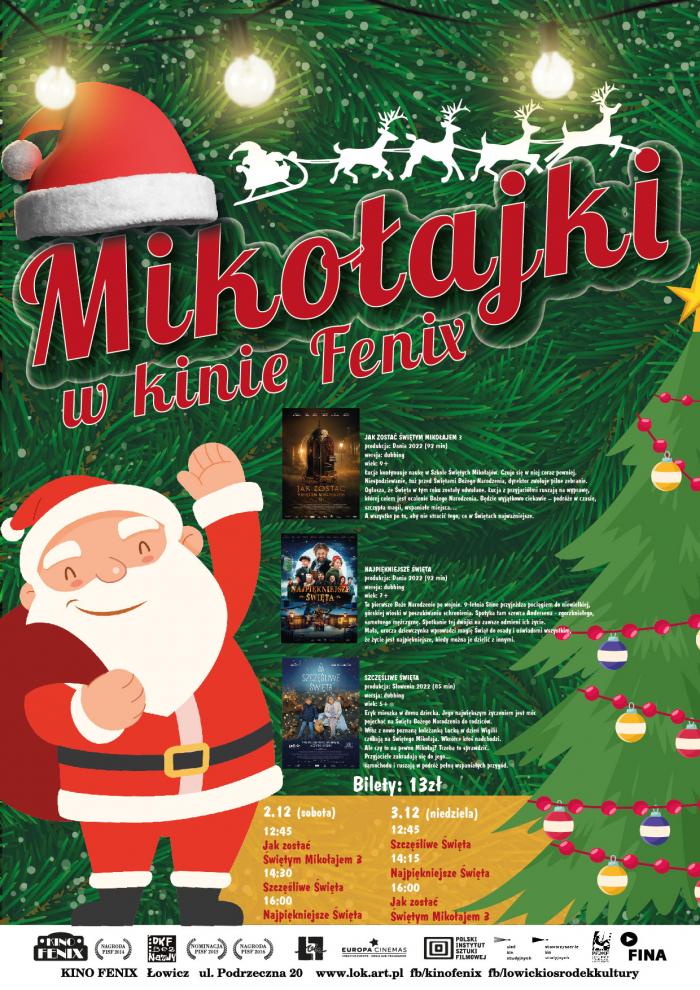Kino Fenix w Łowiczu zaprasza w najbliższy weekend (2-3 grudnia) na filmowe Mikołajki. W repertuarze znalazły się trzy świąteczne filmy familijne. W naszym konkursie możecie wygrać bilety do kina.
