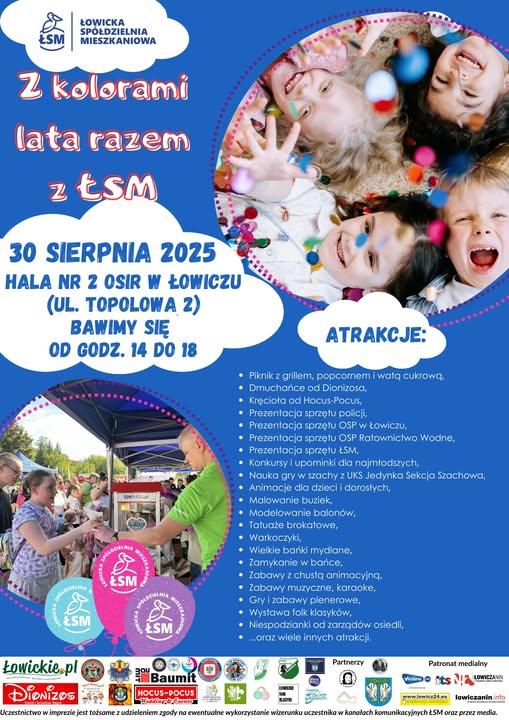 Łowicka Spółdzielnia Mieszkaniowa zaprasza wszystkich mieszkańców na piknik rodzinny „Z kolorami lata razem z Łowicką Spółdzielnią Mieszkaniową”.