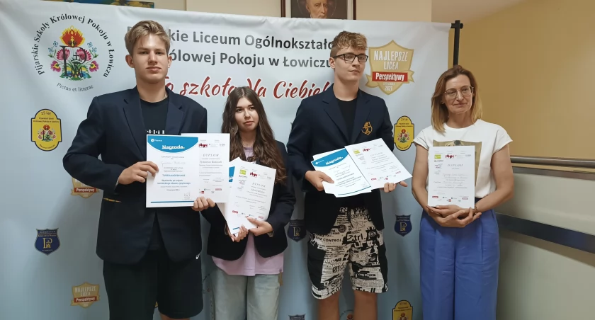 Drużyna z Pijarskiego LO, która wzięła udział w ogólnopolskim konkursie z języka niemieckiego, złożona była z trójki pierwszoklasistów Mari Bilikoz (IHL), Tymoteusza Bodziucha (IPE) i Kacpra Strzelczyka (IPE).