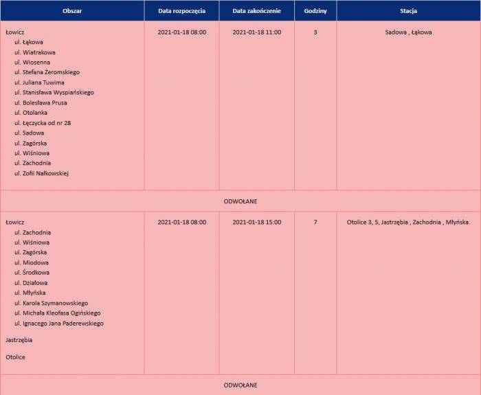 Planowane na 18 stycznia wyłączenia prądu w Łowiczu zostały odwołane.