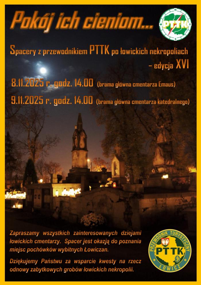 Koło Przewodników im. Anieli Chmielińskiej w Łowiczu działające przy łowickim oddziale PTTK zaprasza mieszkańców i gości miasta na XVI edycję spacerów po łowickich cmentarzach. Jest to tradycja tradycja, która trwa nieprzerwanie od 2009 roku.