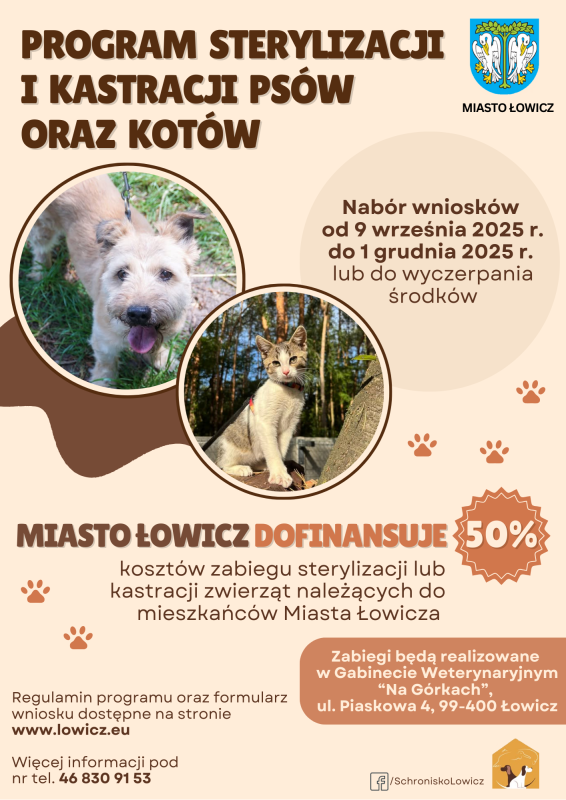 Miasto Łowicz pokrywa 50 proc. kosztów zabiegu sterylizacji oraz kastracji psów i kotów, a także 100 proc. kosztów zaczipowania zwierzęcia podczas zabiegu, jeśli zwierzę nie posiada wszczepionego czipa. Właściciel może zgłosić do wzięcia udziału w akcji maksymalnie dwa zwierzaki.