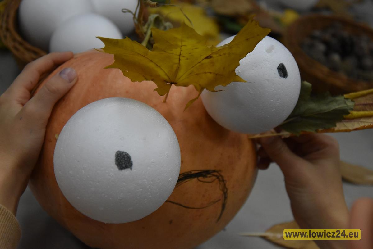 W sali GOKiS unosił się dzisiaj zapach suszonych liści, żołędzi, szyszek i oczywiście dyni, a stoły wypełniły się naturalnymi materiałami, z których powstawały cudowne dyniowe stworki.