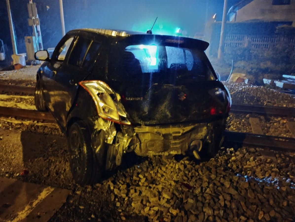 Kierowca samochodu osobowego zignorował zakaz wjazdu na przejazd, ominął opuszczone zapory i wjechał na torowisko.