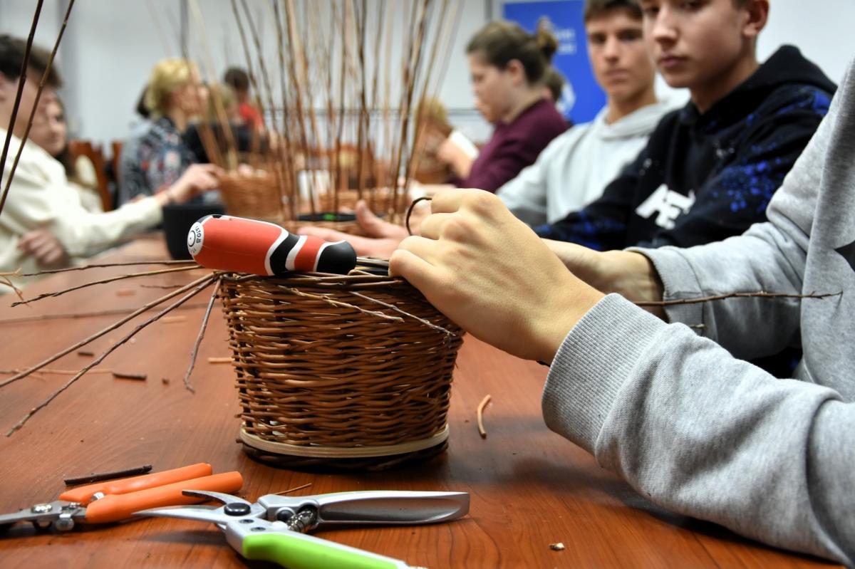 Podczas zajęć zorganizowanych przez Powiatową Bibliotekę Publiczną im. ks. kard. Stefana Wysockiego uczestnicy projektu „Odkrywamy ginące zawody – rzemiosło w Łowiczu” mieli okazję poznać tajniki plecionkarstwa pod okiem doświadczonych rzemieślników. Warsztaty nie tylko przyniosły wiedzę na temat historii plecionkarstwa, lecz także pozwoliły na rozwijanie cierpliwości, precyzji i koncentracji. Dla wielu uczestników był to pierwszy kontakt z wikliną, który na pewno zapadnie im w pamięć. Projekt został dofinansowany ze środków programu „Nasze Tradycje” Ministerstwa Edukacji.