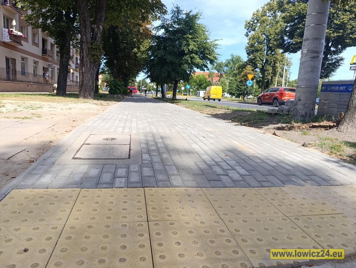 Zdjęcia przedstawiają remont chodnika przez powiat łowicki z kostki brukowej, odpowiadając na prośby mieszkańców. Roboty czasowo zawieszone z powodu braku dostaw, planowane zakończenie przed nowym rokiem szkolnym. Problematyczne pozostają zniszczone ławki miejskie, których wymiana opóźniona przez ratusz. Miasto współfinansuje remont, inwestując w częściowe naprawy chodników. Sytuacja ilustrowana na zdjęciach ukazuje postępy prac i nadal trwające wyzwania.