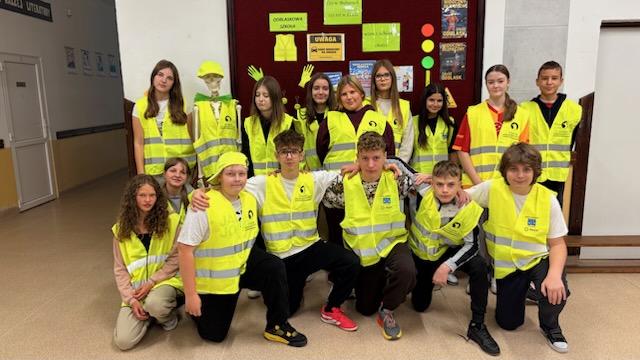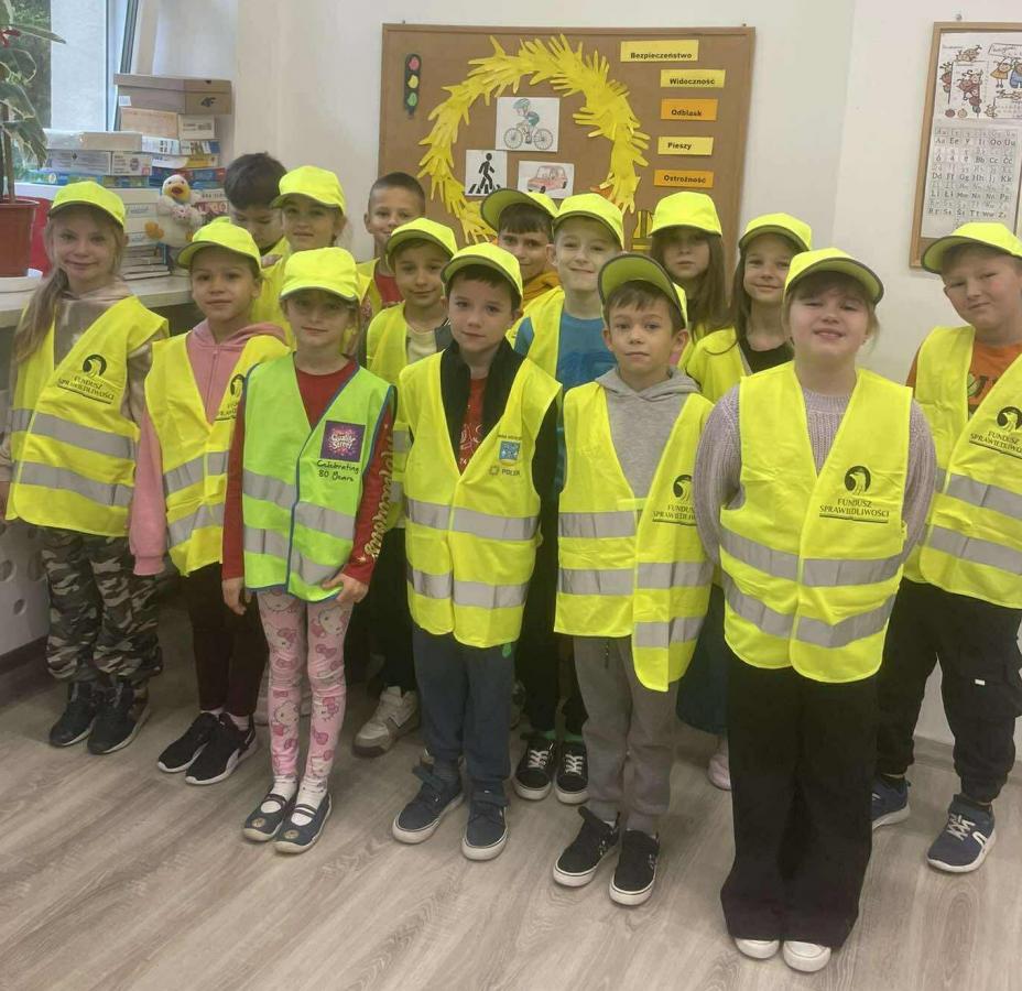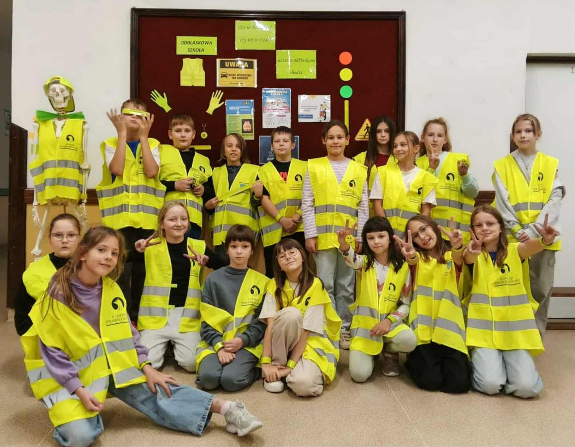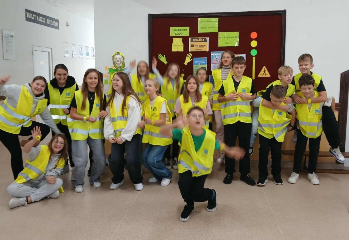 W ramach konkursu „Odblaskowa Szkoła” szkoła realizuje inicjatywę promującą noszenie odblasków i bezpieczne zachowania na drodze. Dyrektor Agnieszka Szuluk podkreśla, że dba o ochronę uczniów i zachęca do troski o bezpieczeństwo wszystkich użytkowników dróg. Dzięki temu uczniowie zyskują nawyk dbania o swoje bezpieczeństwo, co ma kluczowe znaczenie, zwłaszcza jesienią i zimą, gdy warunki na drodze stają się trudniejsze. Grupa zdjęć prezentuje zaangażowanie szkoły w edukację i bezpieczeństwo uczniów.
