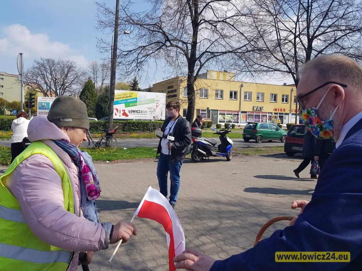 Starosta, na targowisku miejskim, rozdał 200. flag z okazji Dnia Flagi Rzeczypospolitej Polskiej (Foto i Video)
