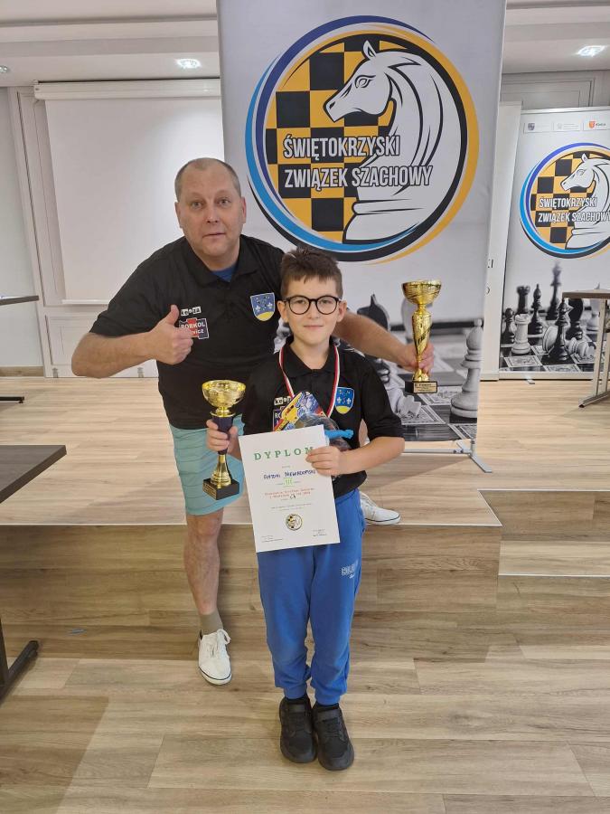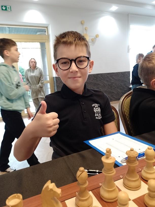 Galeria zdjęć przedstawia emocje i sukcesy uczestników turnieju szachowego, który był eliminacją do Mistrzostw Polski. Antoni Niewiadomski zdobył brązowy medal, zapewniając sobie miejsce w Finale Ogólnopolskim. Maria Łopusińska i Michalina Dąbkowska również uzyskały awanse, mimo że nie stanęły na podium. Cezary Sęczek i Mateusz Błaszczyk rywalizowali z determinacją, zdobywając cenne doświadczenie. Zawodnicy mieli także czas na relaks i integrację, korzystając z atrakcji przygotowanych przez organizatorów. Wysoki poziom sportowy reprezentacji UKS Pałac Nieborów potwierdził się w półfinałach turnieju, co jest efektem ich pracy, pasji i determinacji.