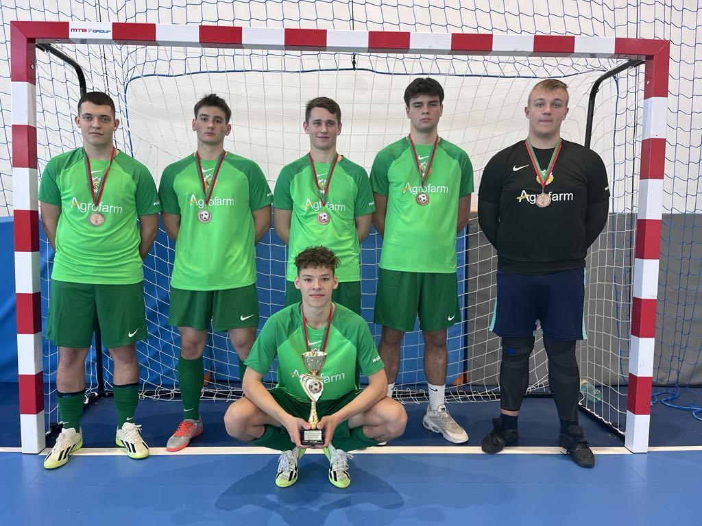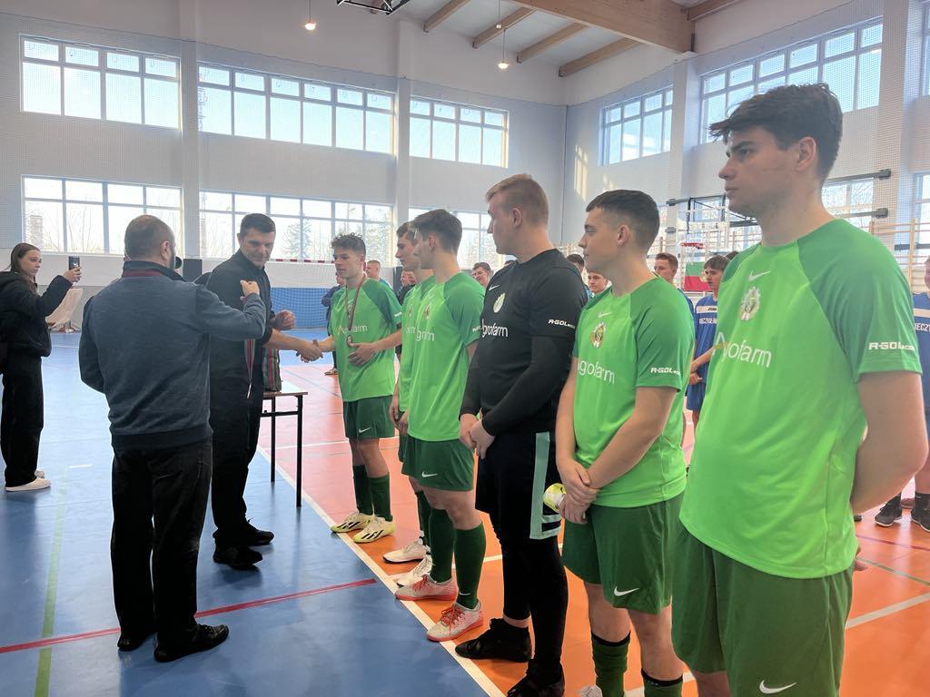 Galeria zdjęć z sukcesem ZSCKR Zduńska Dąbrowa w rozgrywkach, gdzie mimo wyrównanych spotkań, zdobyli brązowe medale. Zawodnicy dzielnie walczyli na boisku, zdobywając zwycięstwa i pokonując rywali. Na zdjęciach widać radość i determinację zespołu po zdobyciu medalu. Wyróżniają się wspólnymi celebracjami i uściskami po udanych akcjach.